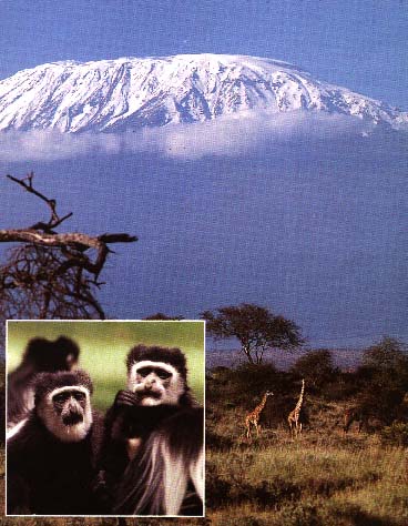 De Kilimanjaro die zich majestueus verheft boven de vlaktes van Noord-Tanzania, ontstond ooit uit een serie heftige vulkaanuitbarstingen. Van de voet tot de top zijn de veelzijdigste leefgebieden onstaan.