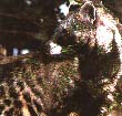 | Zone 4: Het klimaat in deze afro-alpiene of hoog-alpiene zone is extreem ruw. Overdag brandt de zon zonder erbarmen en loopt de tem- peratuur op tot 40° Celsius, terwijl het 's- nachts ijzig koud is en de temperatuur tot 0° daalt. De dunne grondlaag is droog en onvrucht- baar. Dat betekent dat het zeldzame regenwater er direct afloopt, en niet wordt opgenomen. In dit ruwe klimaat kunnen maar weinig dieren overleven. Voor de meeste vogels is de lucht te ijl, en voor grotere dieren is er onvoldoende voedsel. | De enige permanente bewoners zijn insekten en spinnen die tussen de spaarzame vegetatie toch nog beschutting tegen het ruwe klimaat en de harde wind kunnen vinden. |